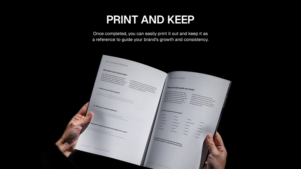 You'll get the interactive A4 Brand Blueprint Worksheet by Studio Lumistra for free.